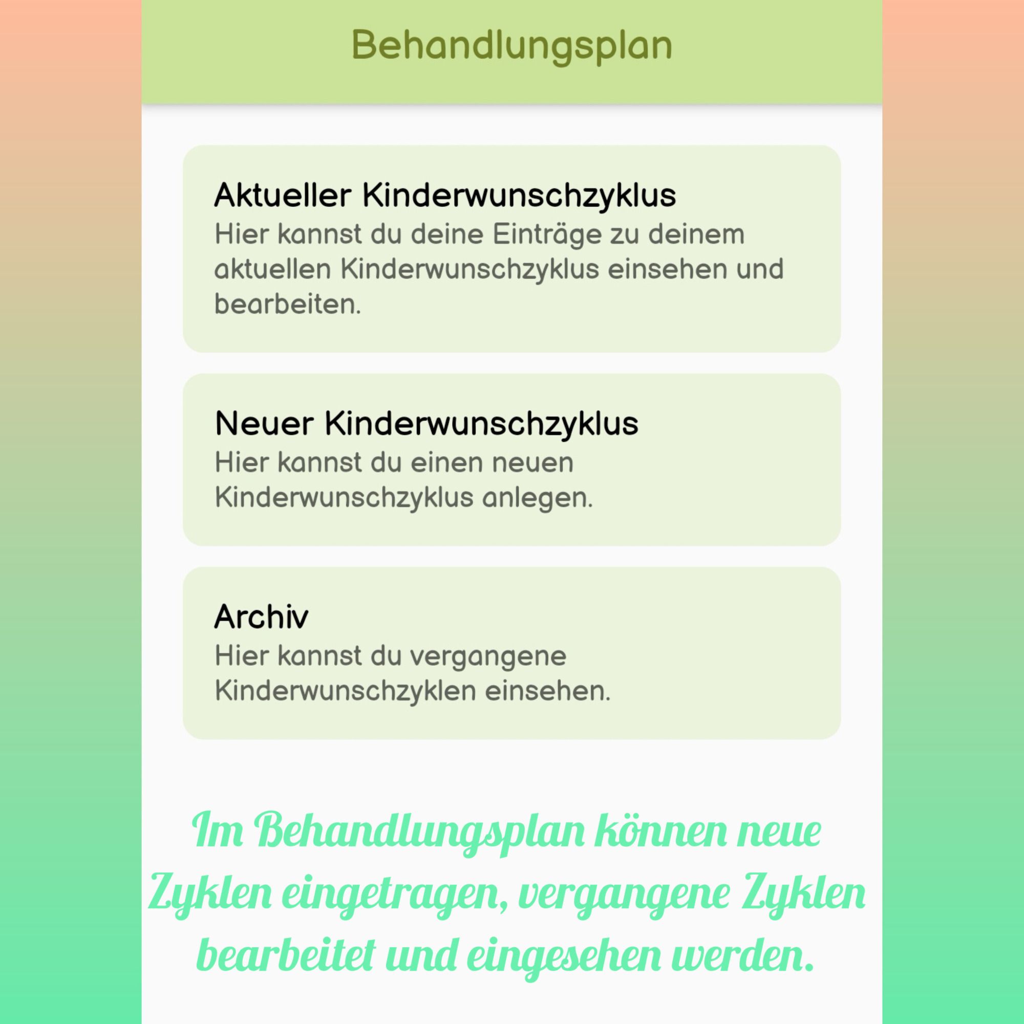 Eine Dokumentationsapp für Frauen bzw. Paare, die sich in Kinderwunschbehandlung befinden.